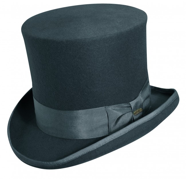 Grey 100% Felt Tall Top Hat for Tuxedo or Costume. Measures 6 inches tall from top to bottom.