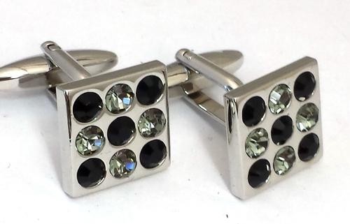 New Mens Black & Clear Round Crystals / Tic Tac Toe Design/ Rhodium Cuff Links With Silver Finish