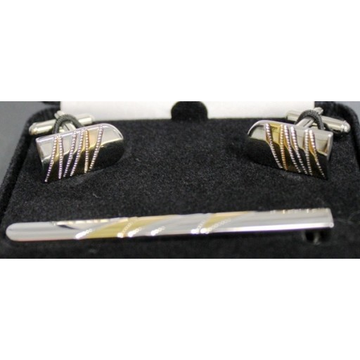 Tie Bar Brushed Face Scalloped Edge Gold Finish