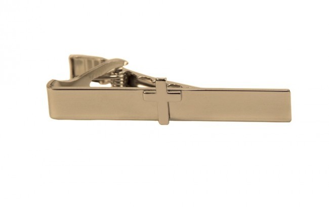 Tie Bar Religious Cross. Tie Bar length is 2". Tie bars are meant to keep your tie in place. The most recommend placement of the tie bar is between third and forth button from the top of your dress shirt. Do not place a tie bar any higher than the second button and do not place it any lower than the forth button. One thing that is very important while you chose a tie bar is to make sure the tie bar's width is shorter than the width of your tie. It looks more elegant and put together that way.