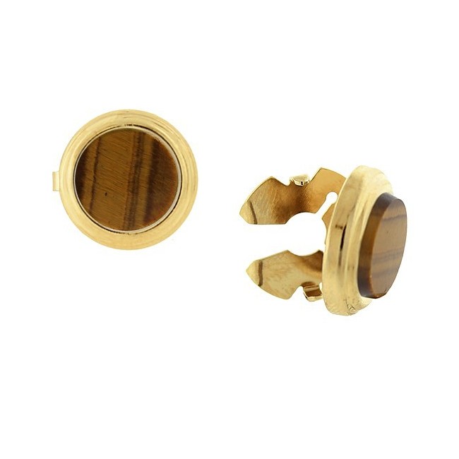 Button Covers Tiger Eye Shirt Cuff Set in Gold Faux Cuff Links Brown
