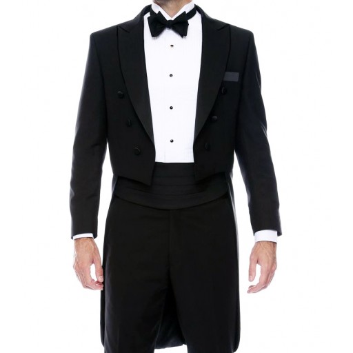 Tuxedo TWO Button, Single Breasted, Notch Lapel 100% Wool Tuxedo coat and pants. Classic Tuxedo coat with satin lapel and satin covered buttons and classic non-adjustable pleated tuxedo trousers un hemmed with the satin stripe on the sides. Pants are a 6-inch drop. Meaning, the waist size is 6 sizes lower then the coat size. For example, if you order a 40R coat you'll receive 34 waist. This item is also great for weddings proms, orchestras, choirs and any other black tie event. Volume discount cannot be combined with any other offer restrictions apply.