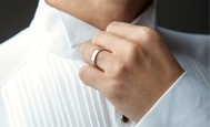 The other shirt, which is a lot easier to take care of and use, is a reversible cuff sleeve. This is basically a barrel cuff, which is your regular shirt cuff, and it has a button like your regular shirt does, except for one difference: it has a second button hole. Therefore, you can actually use cuff links with it. The only difference is it does not fold over. It usually comes in blend shirts, not 100% cotton shirts, and it's easier to take care of.