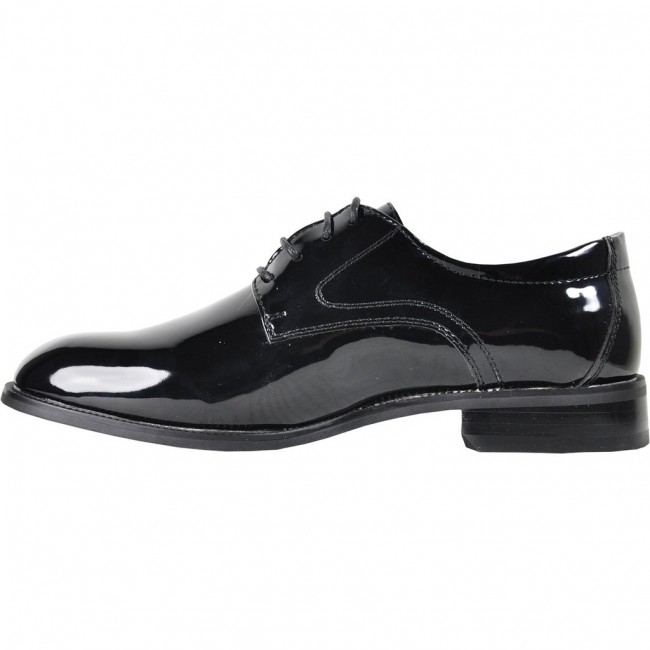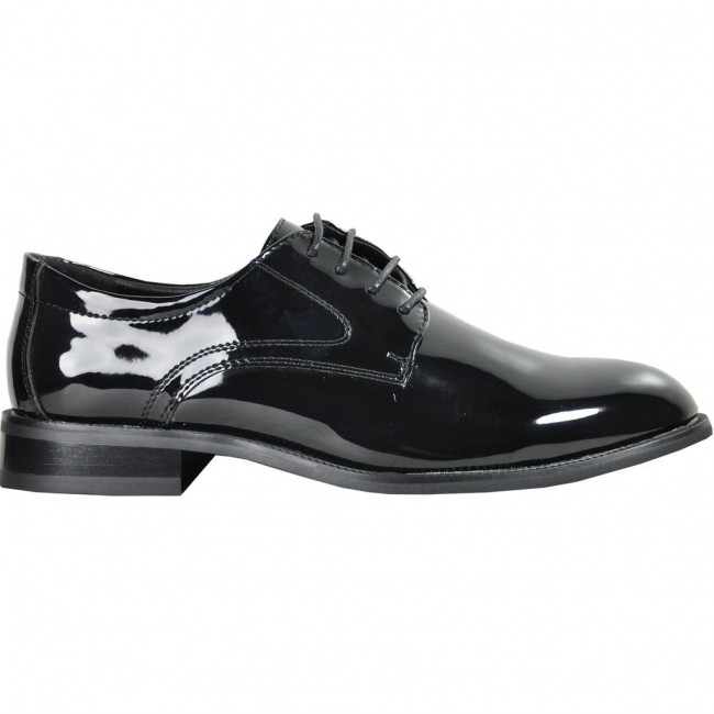 Tuxedo patent leather lace up shoes, very comfortable dress shoes. Although these shoes are not made of leather they are made of a durable man made fabric called PVC. Available in all sizes up to mens size 19, including wide width. Look and feel your best at any event. Perfect for weddings, proms, or any other formal affair. Affordable, yet great quality that you will always find at TuxedosOnline.com. Show up to your formal event in these sleek tuxedo shoes that can't help but radiate a classic appeal. A fantastic high quality formal look for less than the cost of renting or that of large designer department stores.