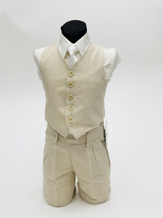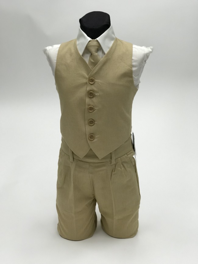 Boys Linen Vest Set 4-Piece Vest Set with Pants Shirt and Tie All Colors- Summer Wear- LInen