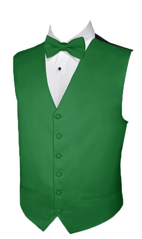 Emerald Green Satin Vest Poly-Satin. Full back, six buttons adjustable vest with two real pockets. The lining and back of the vest is black This vest is double basted and French faced, which means this vest will last you through thirty (30) dry cleanings. It should be dry cleaned but can be washed in cold water. don't let the price fool you. This is a very high quality vest that retails for $85 or more in most stores. We are the direct importers of the product and can pass on the saving to you. Perfect for weddings or any other formal affair. Affordable, yet great quality that you will always find at TuxedosOnline.com. We carry all the latest color to match your prom date dress or wedding bridesmaid colors. . Once you choose the color and size of the vest you will be prompted to add a matching related product. You will get a 20% Discount on the matching item