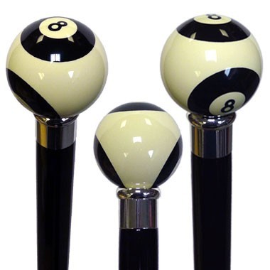 Formal Cane 8 eight ball handle. This Elegant solid maple wood walking stick measures 37 inches long with a rubber bottom tip. This formal cane is lightweight for ease of use. The classic styling of this formal walking stick will impress everyone who sees it. Add the look of sophisticated elegance to your wardrobe with this sleek yet comfortable walking cane, This walking cane is as comfortable as it is stunning. The handle is affixed to a sturdy maple wood shaft that features a sleek black finish that will retain its beauty for years to come. Whether you want to accentuate the look of your formalwear, or would just like a stylish, beautiful piece to add to your tuxedo for the next event you attend, these formal canes for men offer the classic styling you've been looking for at prices you can afford. These fancy mens canes are crafted of top-quality materials, so you can rest assured that your selection will last for years to come. Purchase yours today and add these distinguished looks to your collection! Due to the shape and size of a cane, and the high cost of freight we are only able to ship the product by standard UPS.